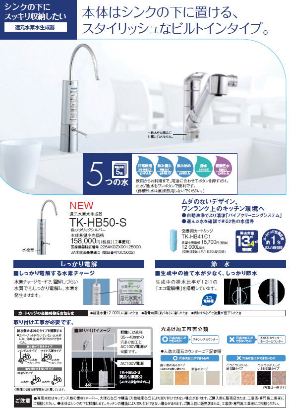ビルトイン浄水器 標準取付工事費\20,000−(税込¥22,000-) アルカリイオン整水器
