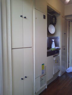 幸い給湯配管や電気メーターなどが近くにありましたので、配線や配管もスッキリ収まっています。