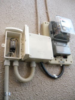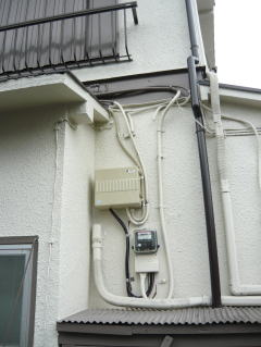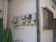 電気メーター周りも古いメーターは一新して、新しい時間帯別メーターを設置。付随の配線工事を行なって取替完了です。