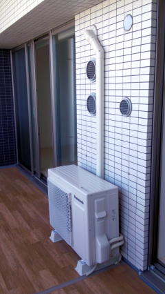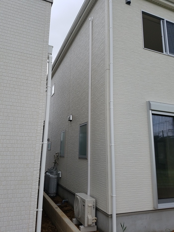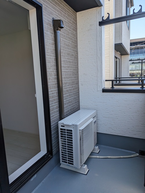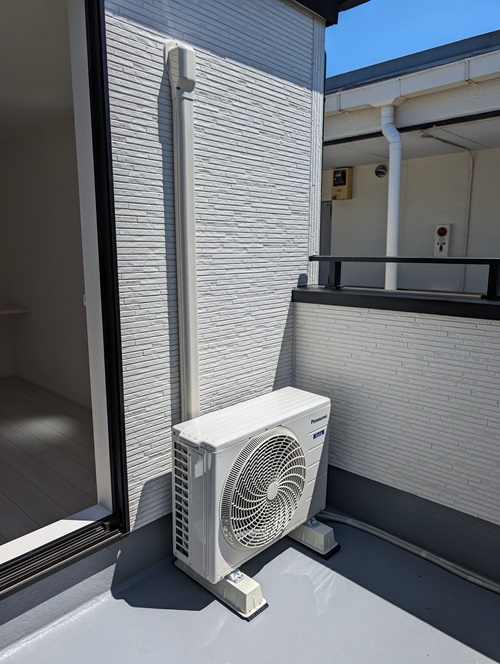 外側には配管カバーを取り付けてきれいに仕上げています。