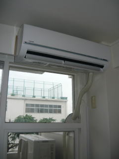 エアコンの取替工事の例です。古くなったエアコンを最新の省エネタイプに取替えました。