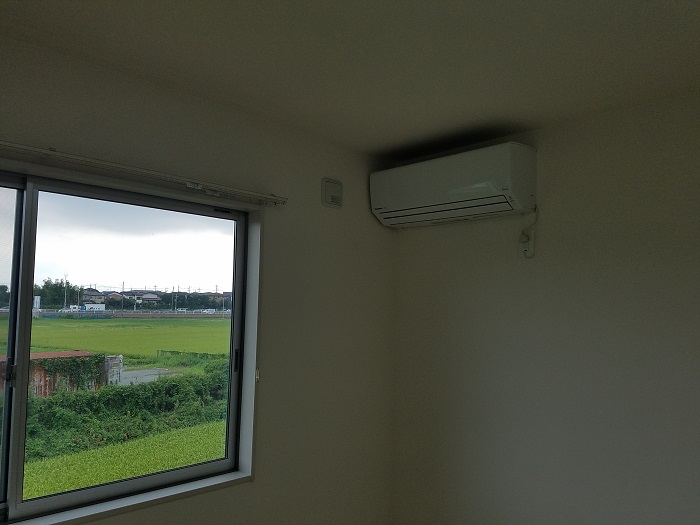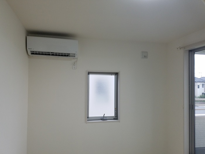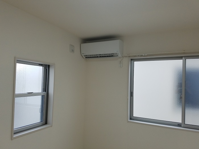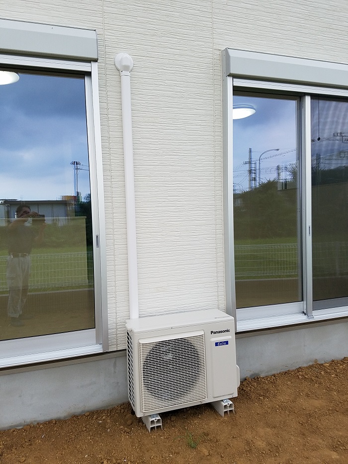 ご新居には絶対必須のエアコン設備。配管カバーで見た目もスッキリ綺麗に!!