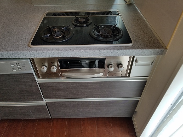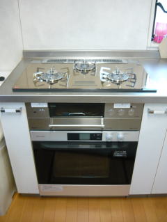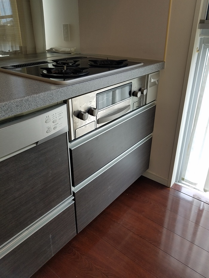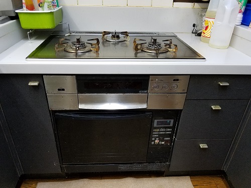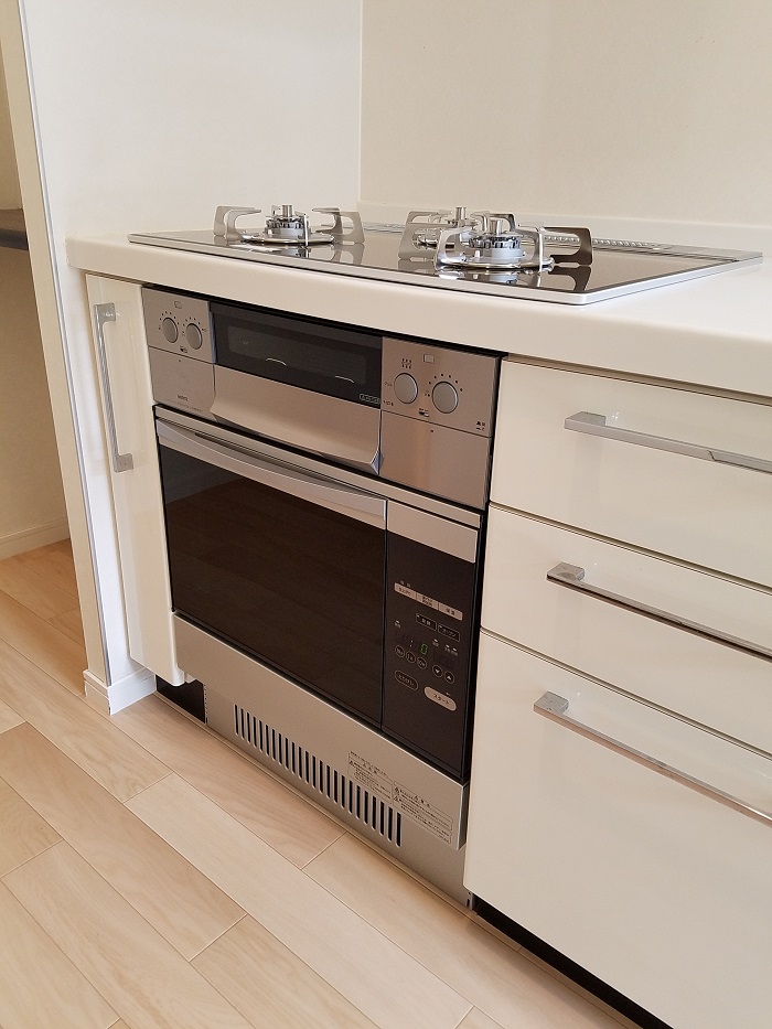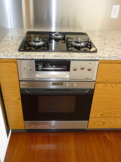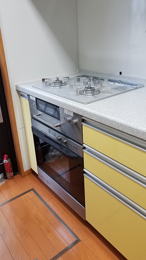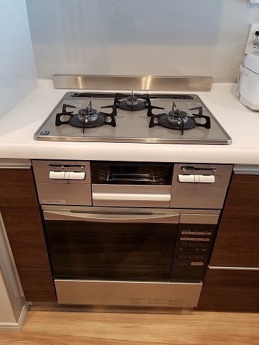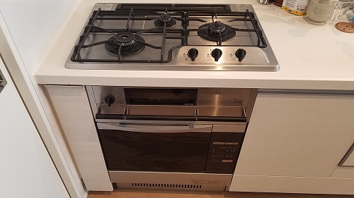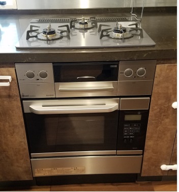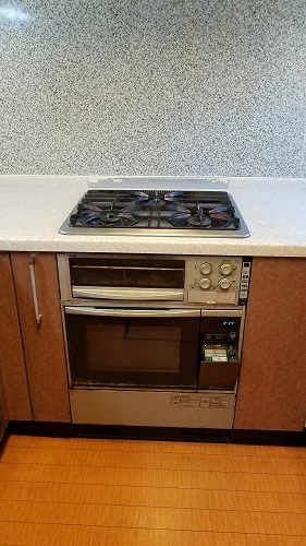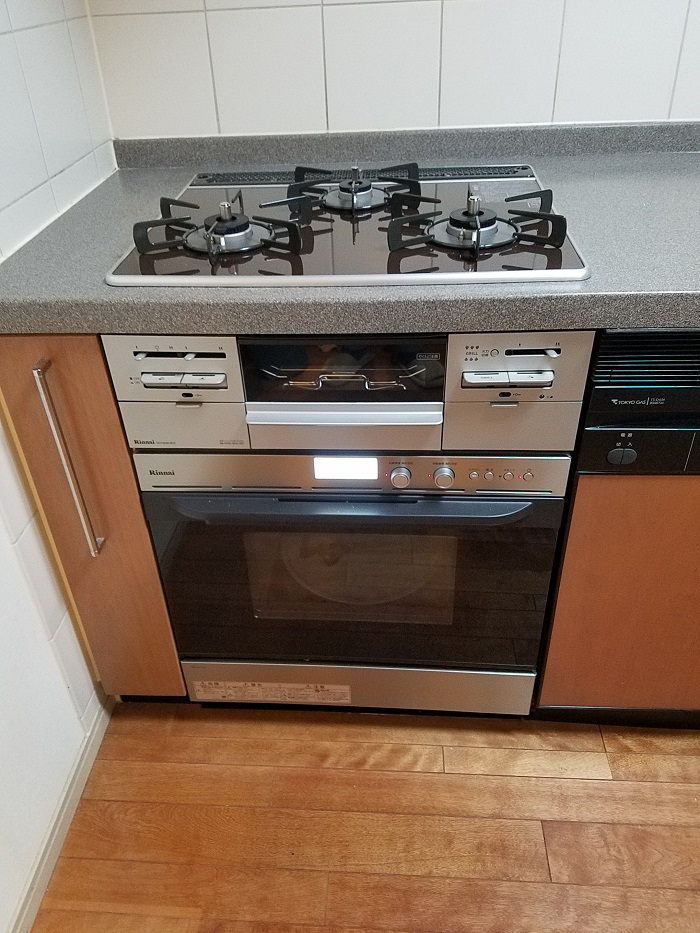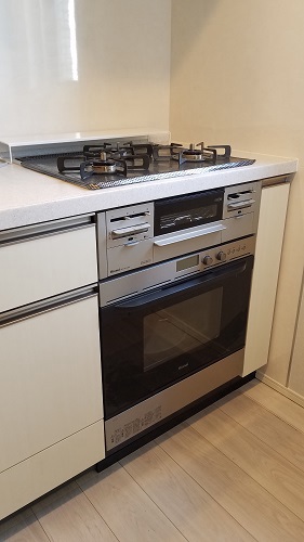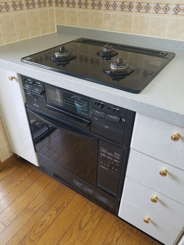 ご入居前に、古いガスコンロのお取り替えとビルトインガスオーブンの同時設置を致しました。