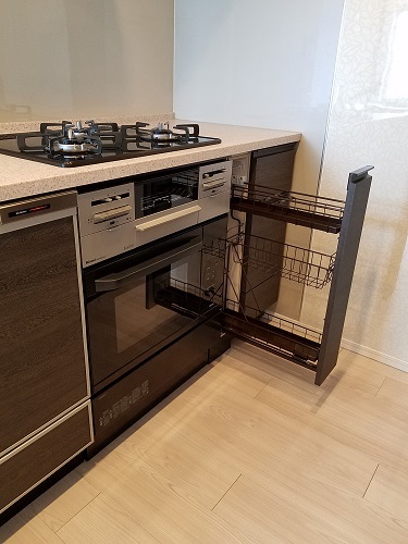 こちらのキッチンは、後付けにてオーブンを設置できる設置スペースサイズのキッチンではありません。