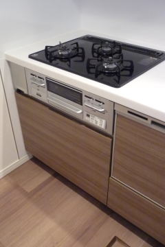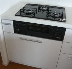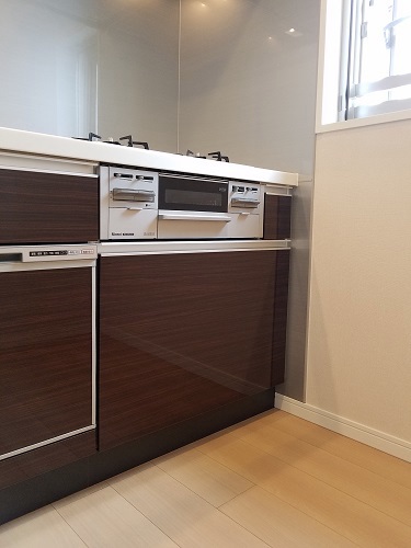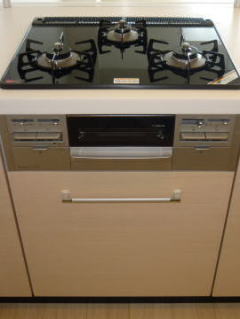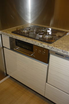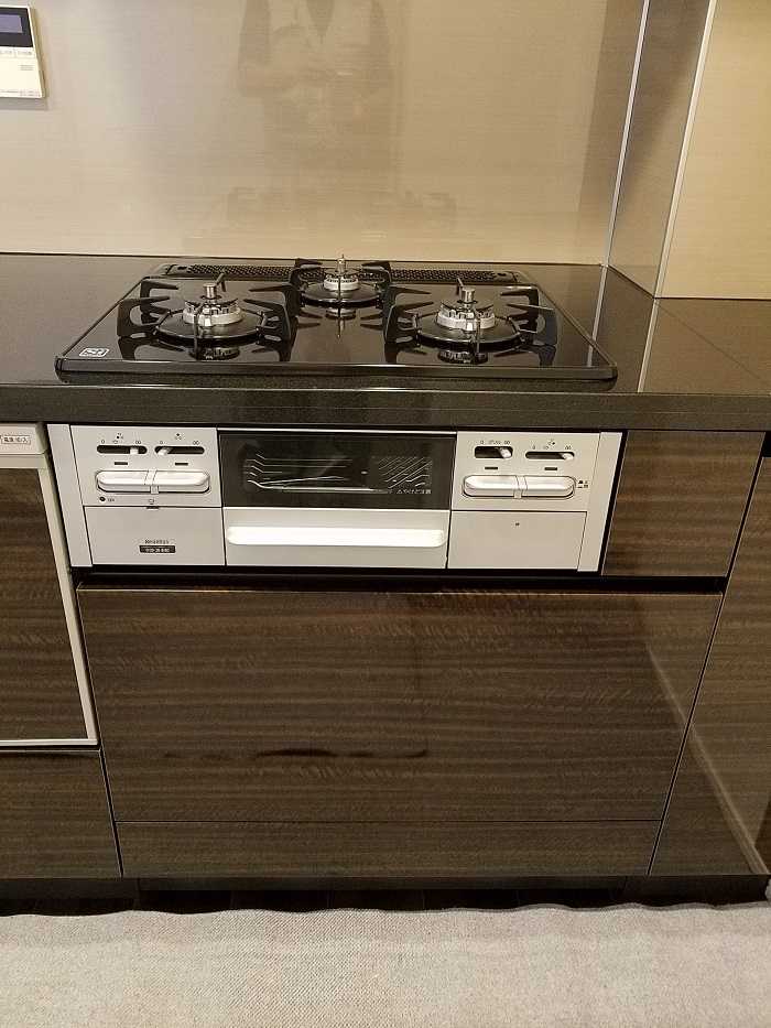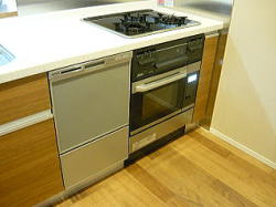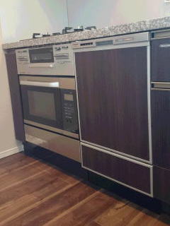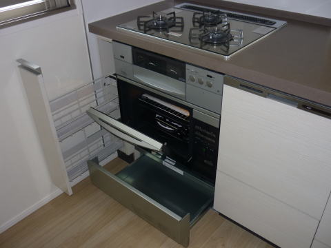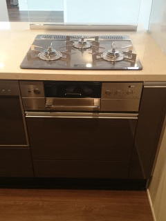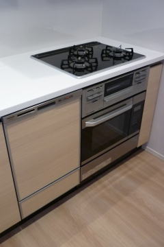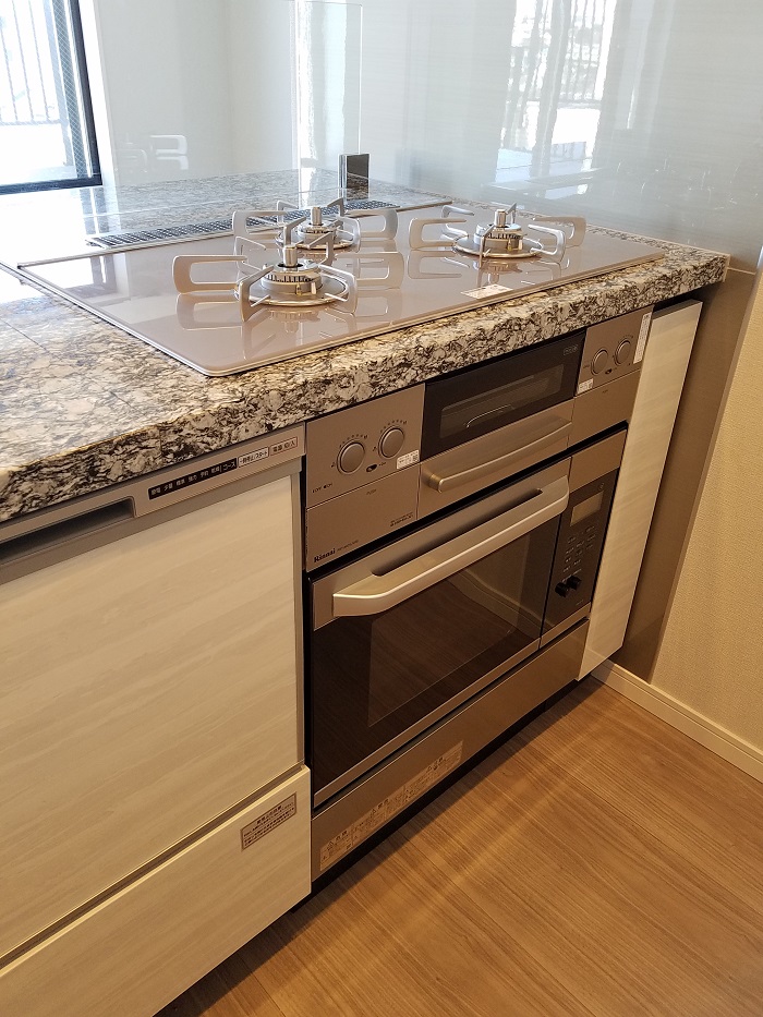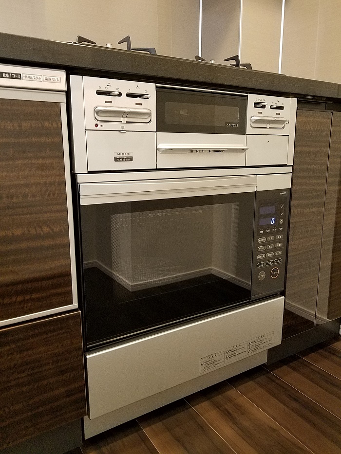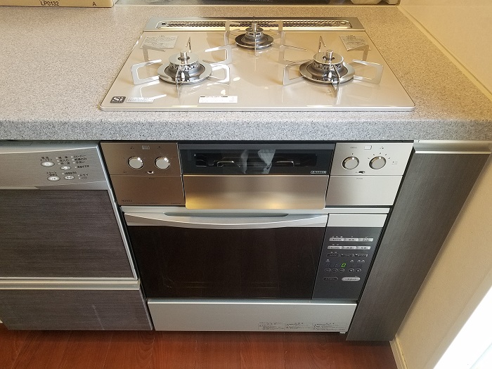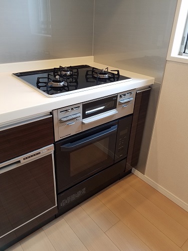 新型食洗機にハイグレードガラストップコンロ、ハイグレードオーブンレンジの組み合わせ。