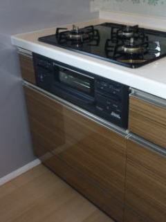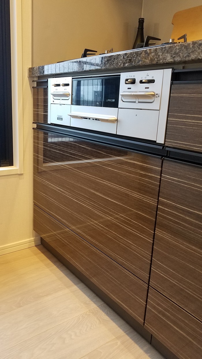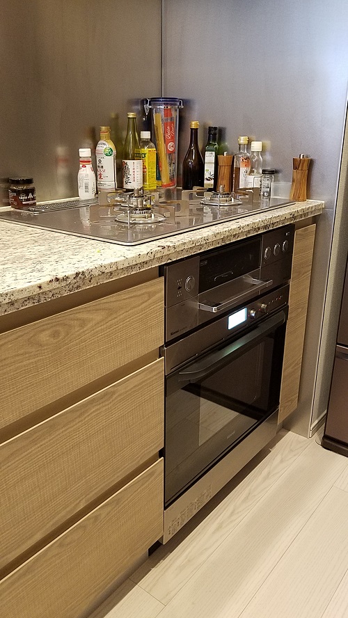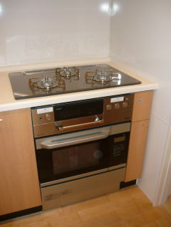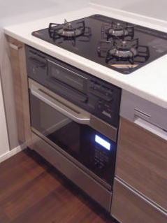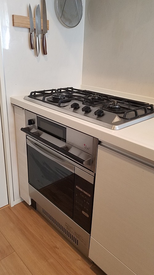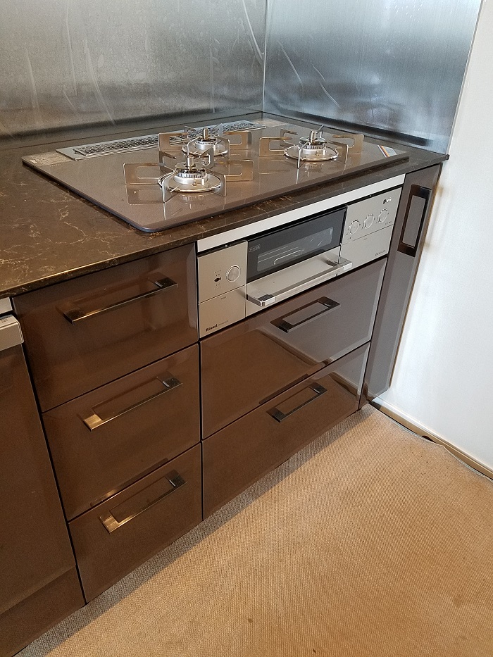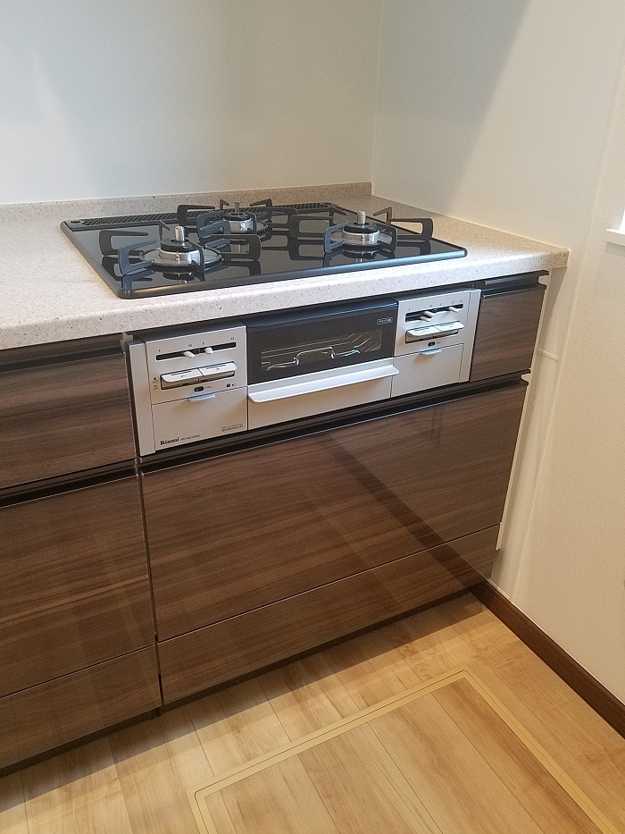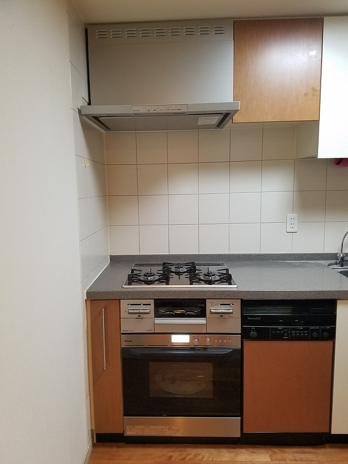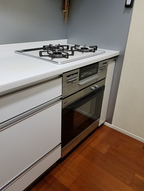 ご入居前、グレードアップオプションのビルトインガスコンビネーションレンジのお取り付けをさせて頂きました。