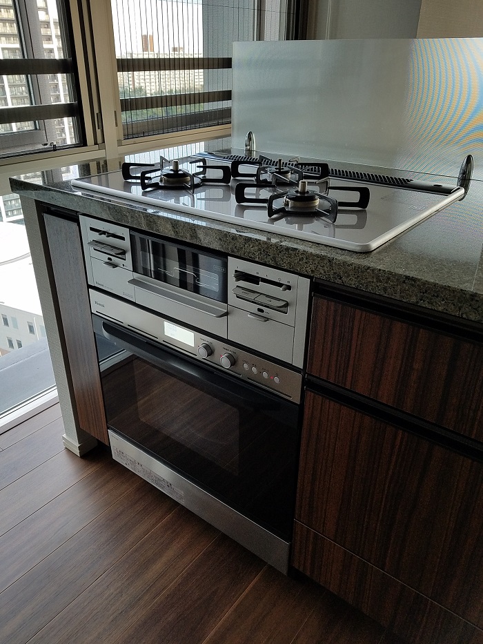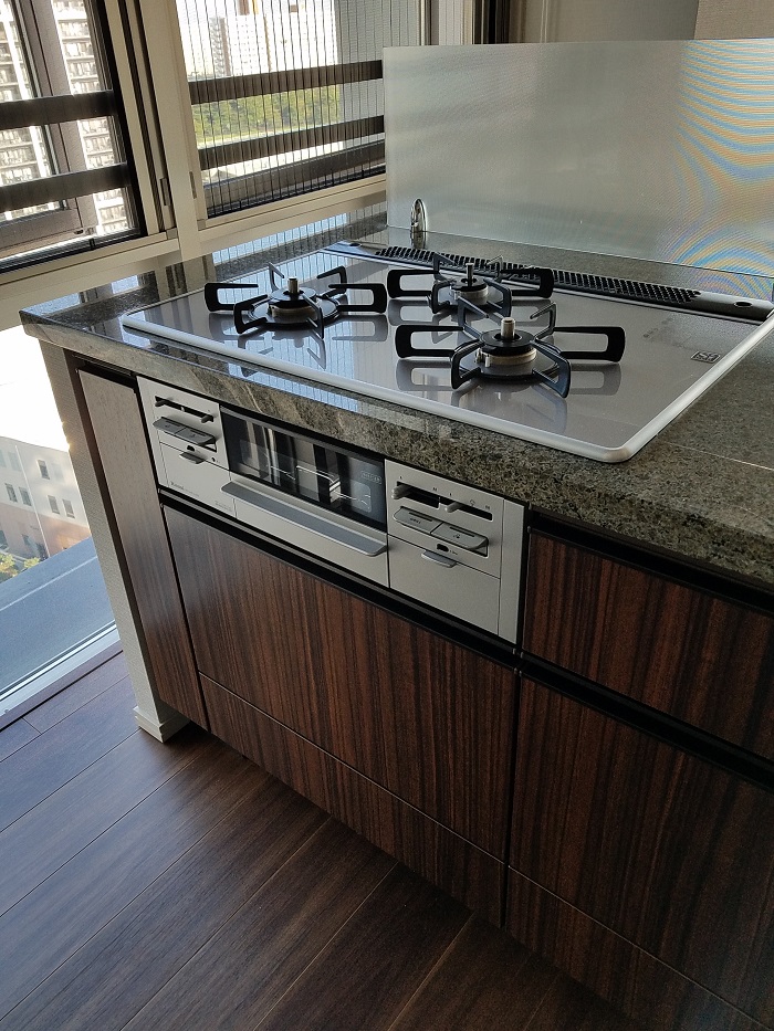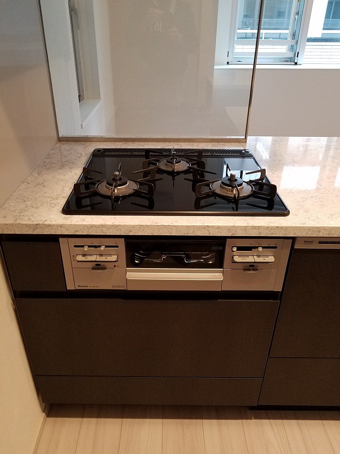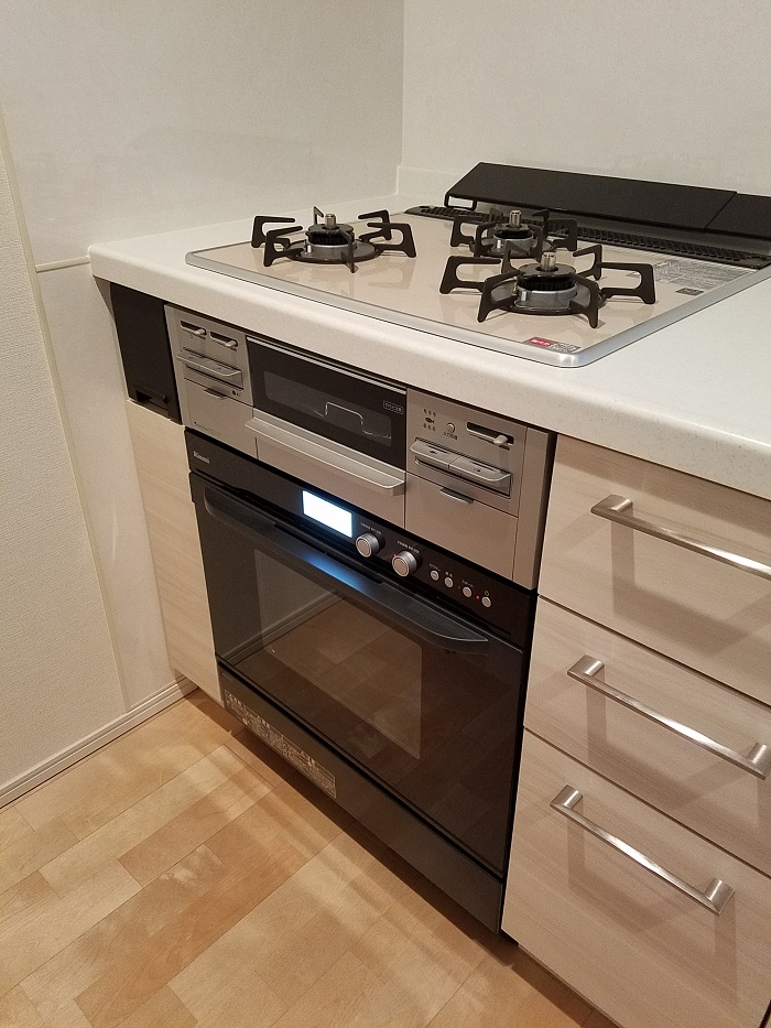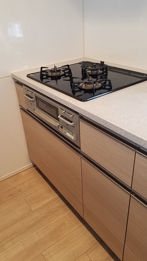 新築マンションご入居前に、ビルトインガスコンビネーションレンジのお取り付けをいたしました。