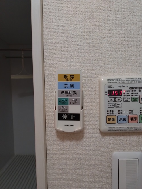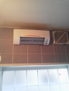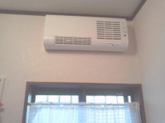 こちらは暖房運転と涼風運転の2機能のタイプです。換気機能はありませんので、既設の換気扇はそのまま残して今まで通り使う事になります。