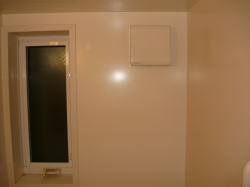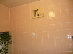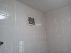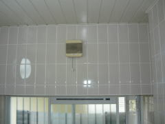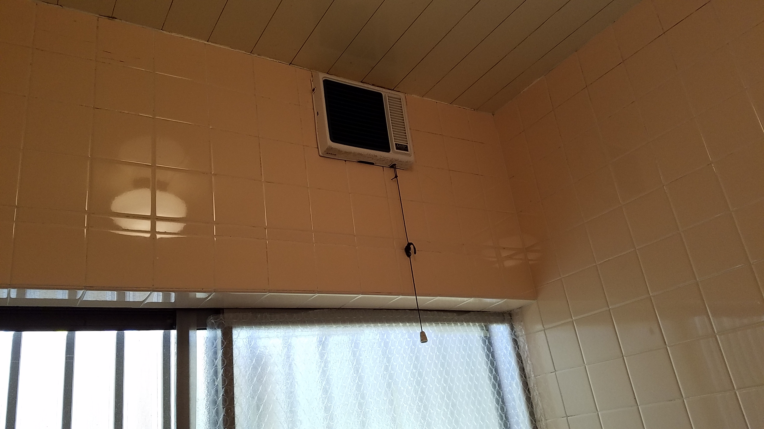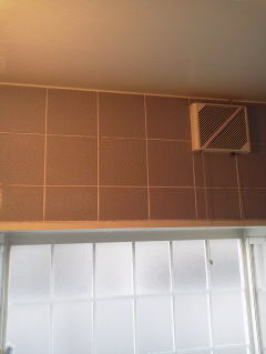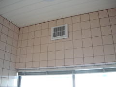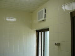 壁面の換気扇が窓上だった為、浴乾の取付寸法が確保できず、換気扇連動型をご提案致しました。