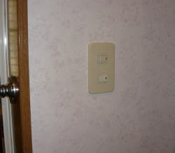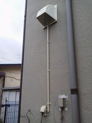 壁の換気扇と取替える形での設置ですので、電源は既設の換気扇電源を利用しています。