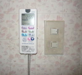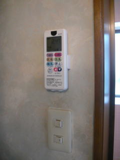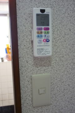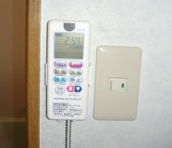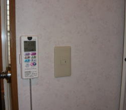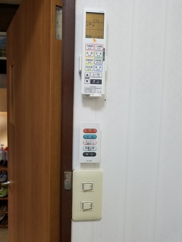 浴乾のスイッチはリモコンになりますので、既設の換気扇スイッチは照明のみの1口に取替まえした。