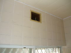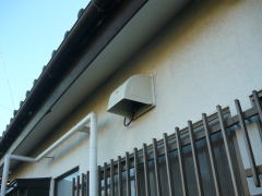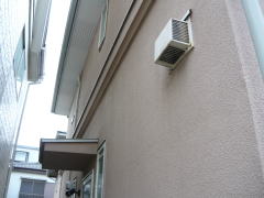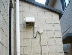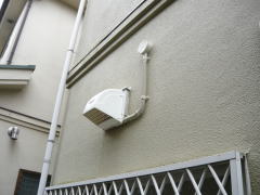 外壁面のウェザーカバー(防雨カバー)が、既設の換気扇と一体型でしたので、新たにウェザーカバーを交換致しました。