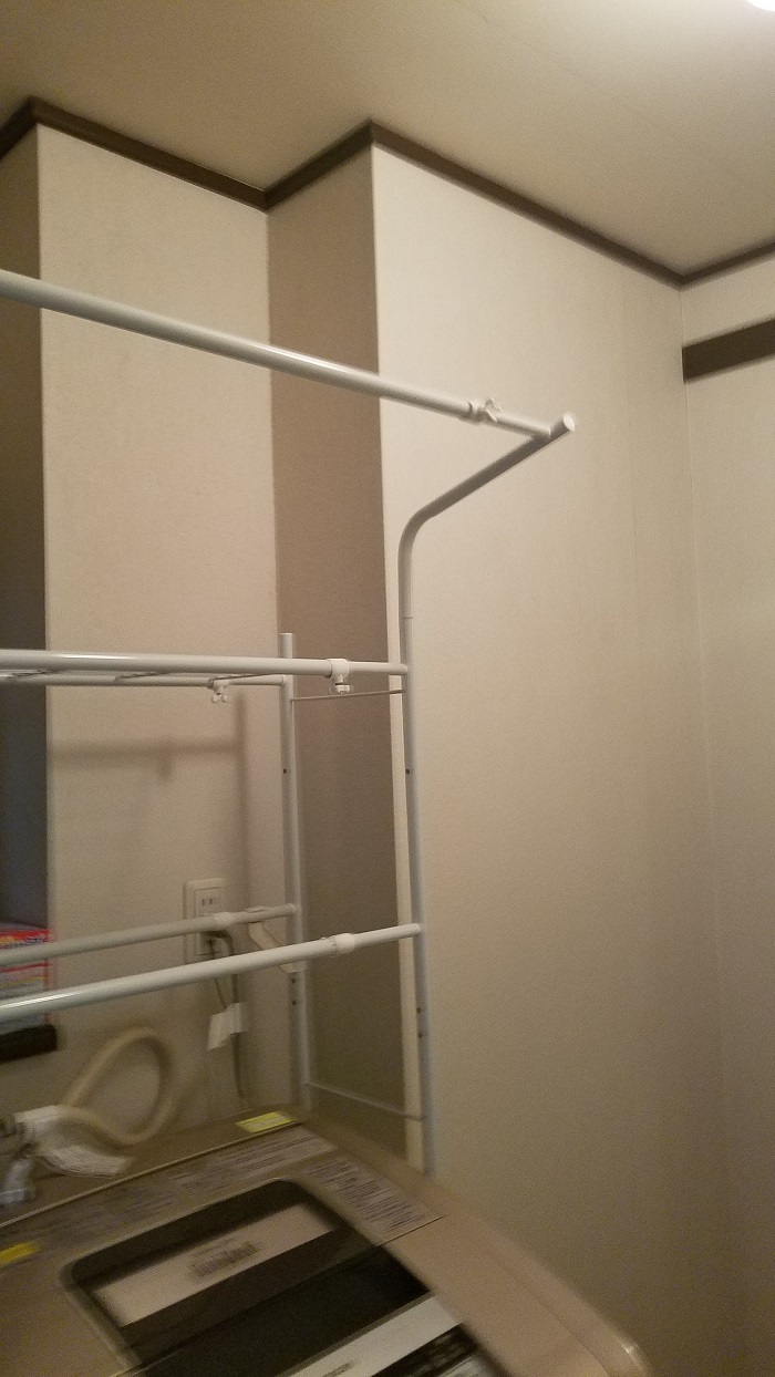 今回は追加工事で、外壁側のウェザーカバー(防雨フード)を新しいものに交換し、脱着可能なランドリーパイプ(物干し竿)を取付けました。