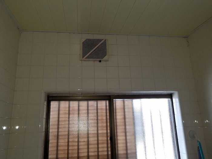 既設小さい換気扇からの暖房機付気扇へ取り替え。